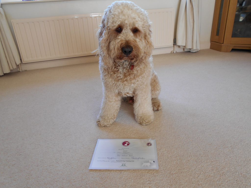 As I said above,  Archie goes to obedience training where they do include the tests that are required at each level, and in Archie’s class there are other dogs at Silver and Gold standard, so he does practice those aswell and manages most of the required elements of those, but has to pass the basic Bronze level before he can have a go at the other two.