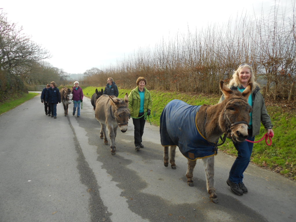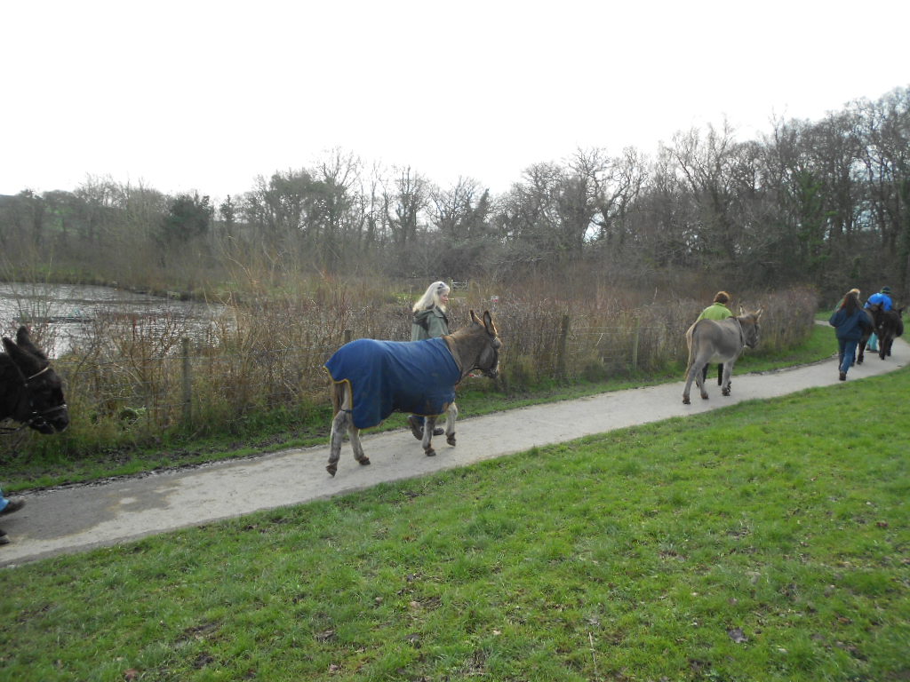 I went down to the DAT Centre in Ivybridge on Monday 21st January 2013, where I am a volunteer, which was my first stint since Christmas. It was a very cold day and there was still remnants of the snow and ice that we had experienced over the last few days.We had one school in during the morning, with a second booked in, but they cancelled so we had a little spare time until the next school came after lunch. The centre was just getting back to normal after the Christmas break, and some of the donkeys had become a little bored, so we decided to take 6 of them for a nice little stroll around Filham Park lake to stretch their legs and do something a little bit different (although they have been on these strolls before).